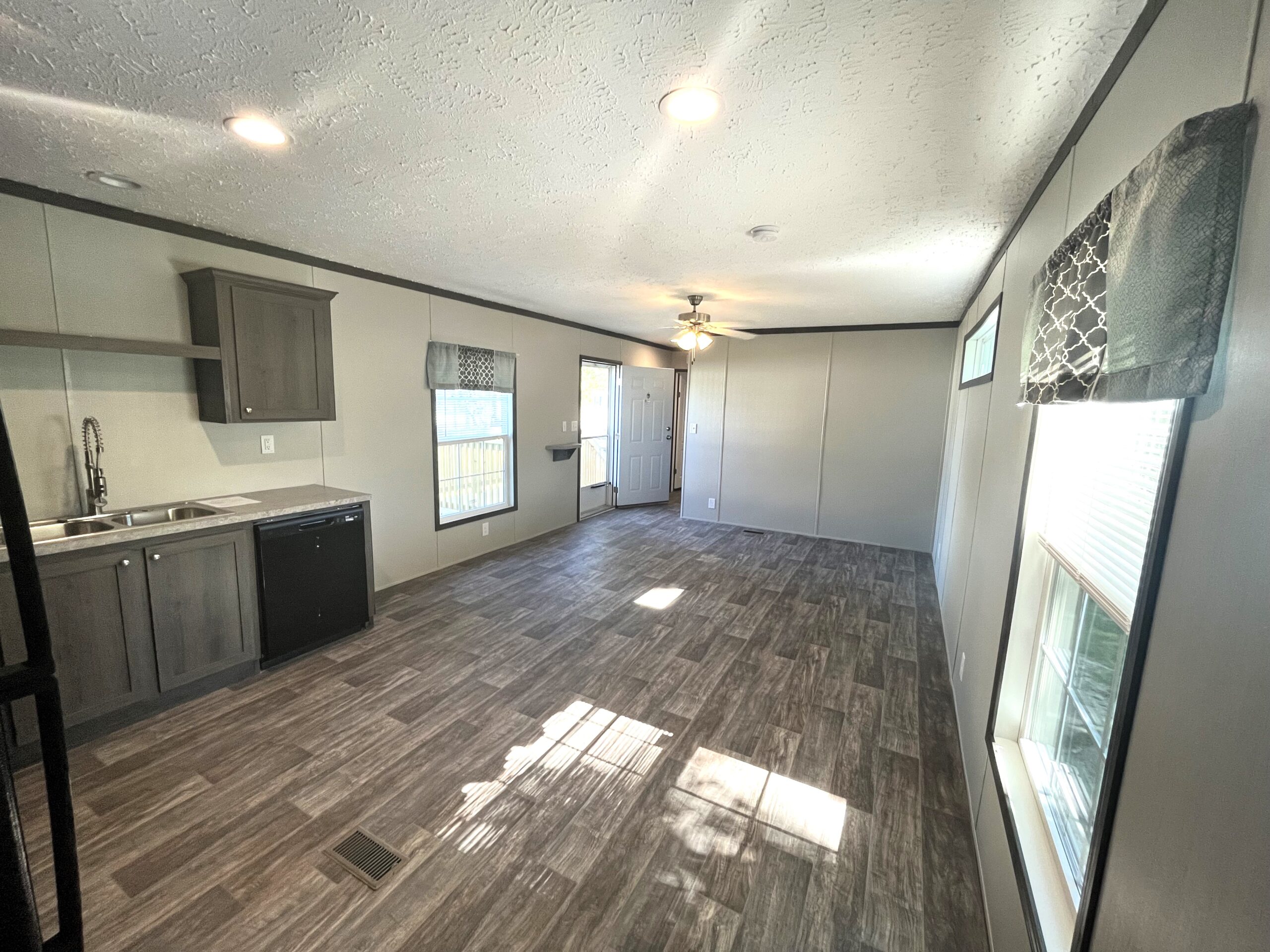 Step into the heart of the home—a contemporary kitchen equipped with all-electric appliances, including a dishwasher, fridge, and stove, making meal prep a breeze. The living room features a ceiling fan to keep you cool and comfortable all year round.